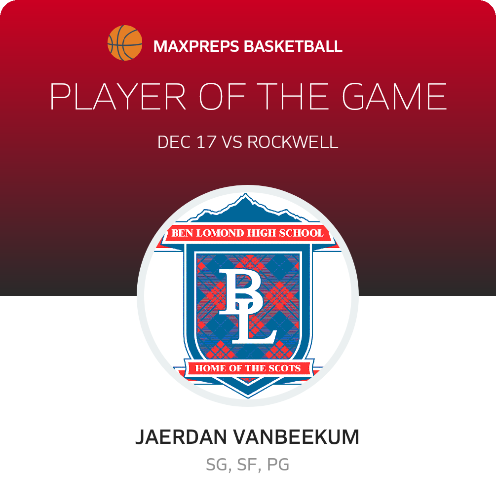 December 17, 2024: Ogden, UT 84404 The Ben Lomond Scots bounced the visiting Rockwell Marshals basketball squad by a final score of 79-58 in Tuesday's non-league outing.