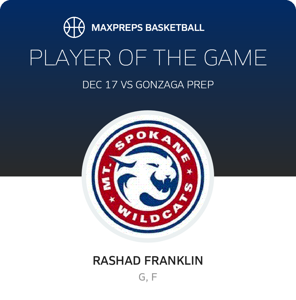 Congratulations to #2 Rashad Franklin for being selected the Mt. Spokane Freshman Basketball Player of the Game.