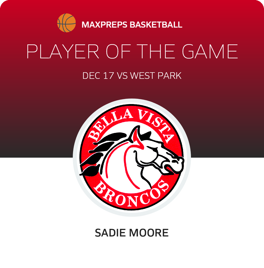 December 17, 2024: Fair Oaks, CA 95628 In Tuesday's non-league test, the Bella Vista Broncos (Fair Oaks, CA) basketball squad got by the visiting West Park Panthers (Roseville, CA), by a score of 41-40.