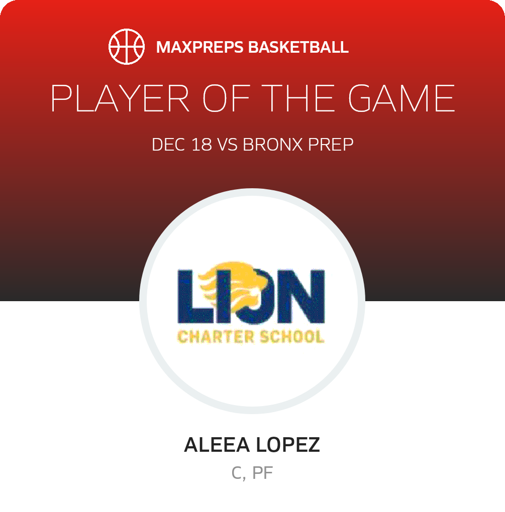 Congratulations to #32 Aleea Lopez for being selected the Leaders In Our Neighborhood Girls Basketball Player of the Game.