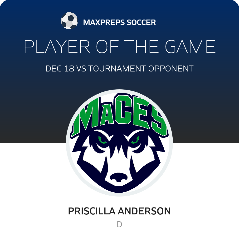 With the loss, Tournament Opponent drops to 0-1 on the season. The travel to Maywood CES (Maywood, CA) to encounter the Wolfpack in a non-league match on Tuesday, December 19. The Wolfpack come into the match with a record of 2-4. Maywood CES won 2-1 in their recent non-league match against Tournament Opponent (, )