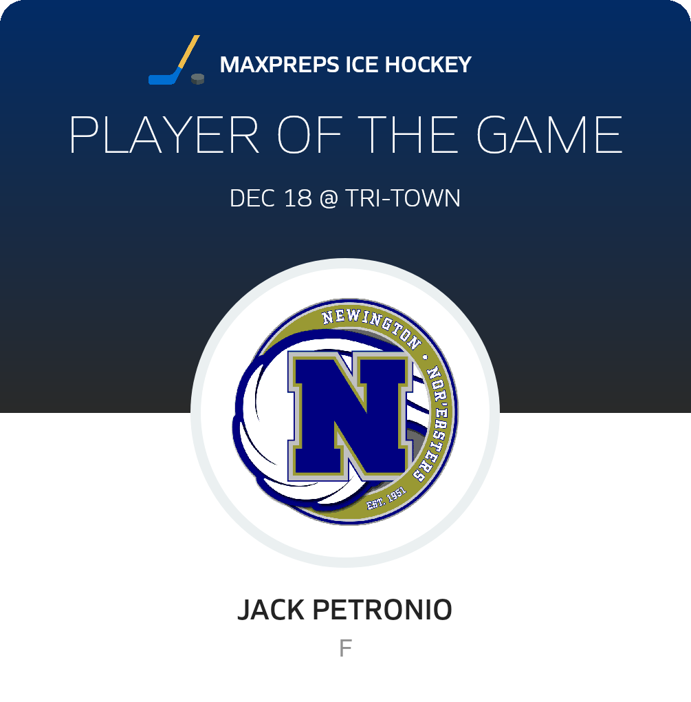 December 18, 2024: Ellington, CT In Wednesday's non-league test, the Newington Co-op Indians (Newington, CT) ice hockey squad bounced the host Tri-Town (Ellington, CT), by a final score of 6-1.