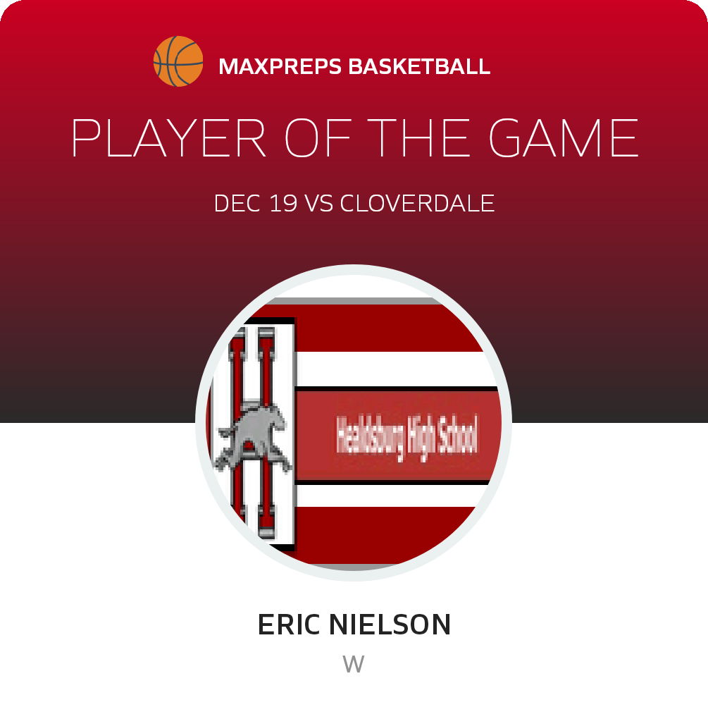 Congratulations to #4 Eric Nielson for being selected the Healdsburg JV Basketball Player of the Game.