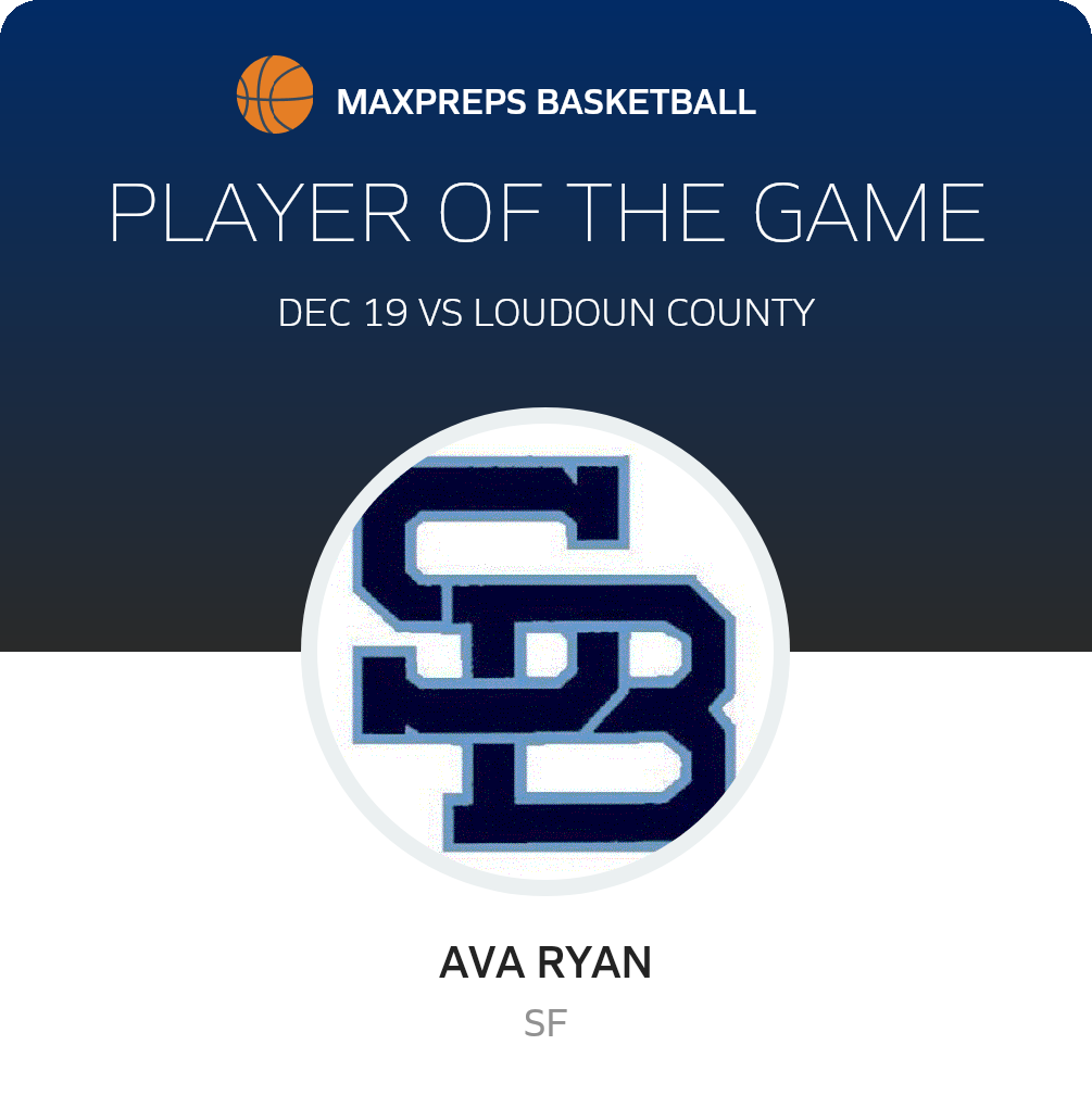 Congratulations to #12 Ava Ryan for being selected the Stone Bridge Girls Basketball Player of the Game.