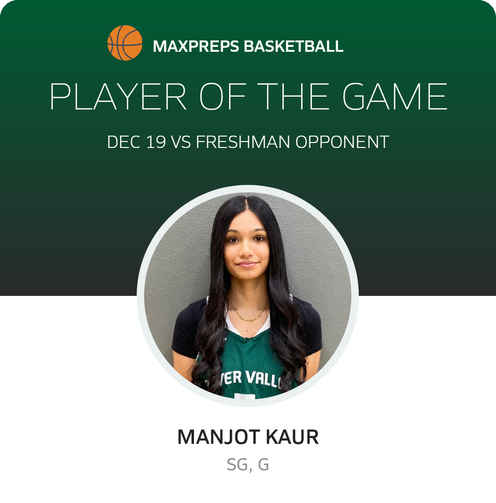 Congratulations to #5 Manjot Kaur for being selected the River Valley Girls Freshman Basketball Player of the Game.