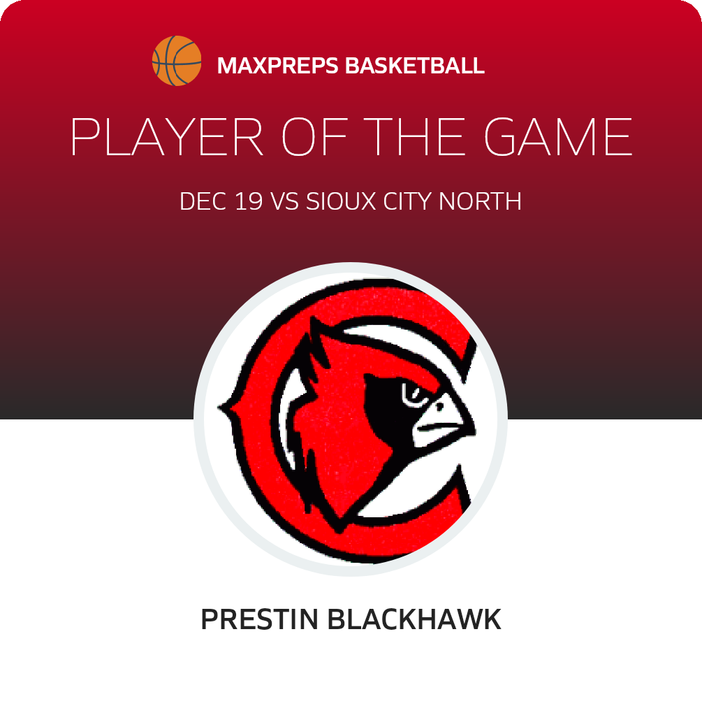 Congratulations to #1 Prestin Blackhawk for being selected the South Sioux City Basketball Player of the Game.