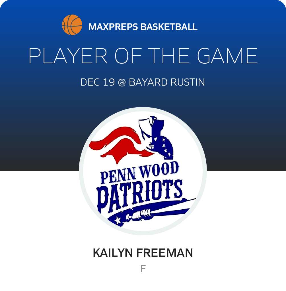 Congratulations to #31 Kailyn Freeman for being selected the Penn Wood Girls Basketball Player of the Game.