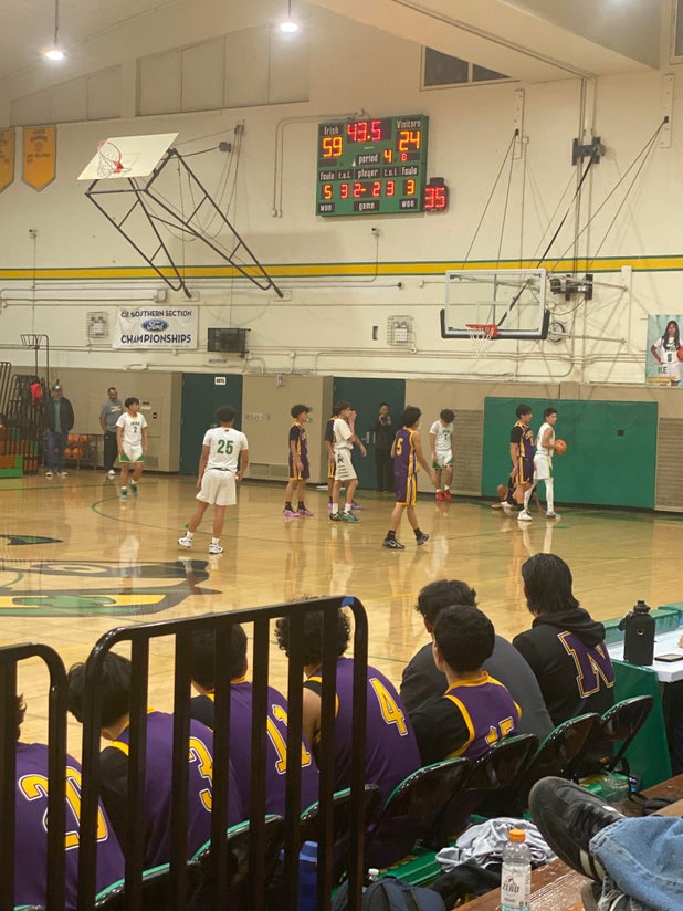 December 19, 2024: La Palma, CA 90623 The Kennedy Fighting Irish bounced the visiting Norwalk Lancers basketball squad by a final score of 61-24 in Thursday's non-league outing.