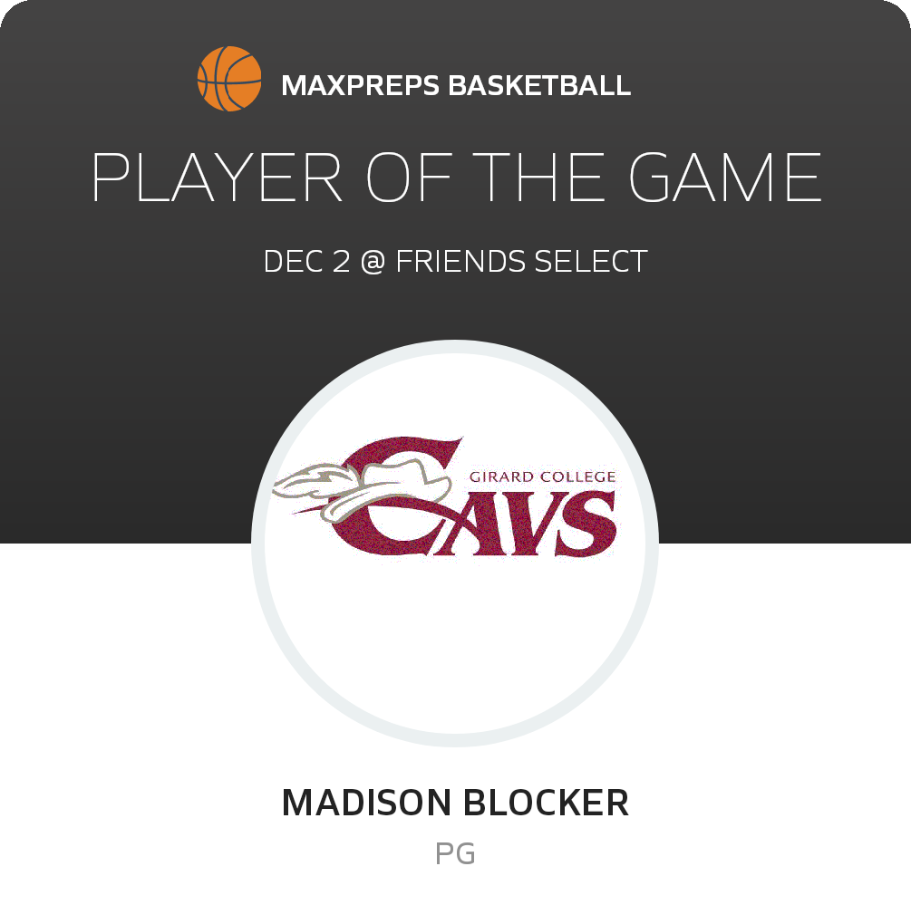 Congratulations to #2 Madison Blocker for being selected the Girard College Girls Basketball Player of the Game.