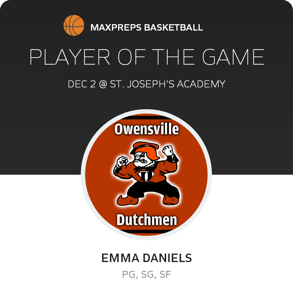 Congratulations to #1 Emma Daniels for being selected the Owensville Girls Basketball Player of the Game.