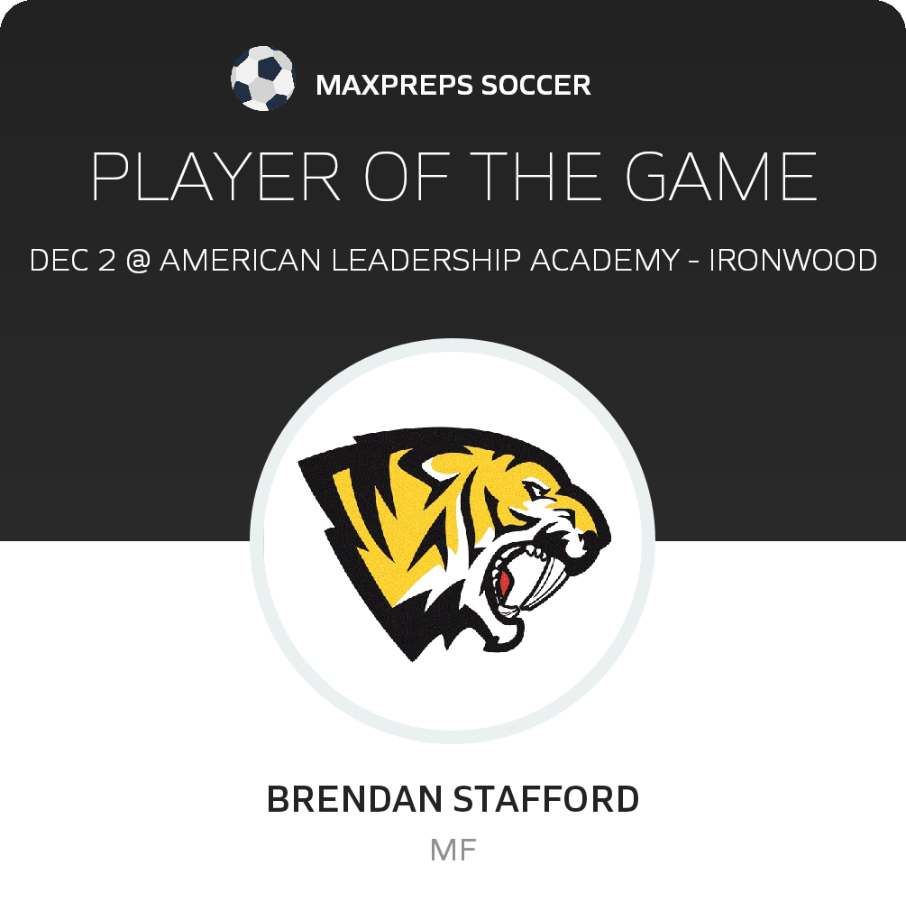 Congratulations to #8 Brendan Stafford for being selected the Saguaro Soccer Player of the Match.
