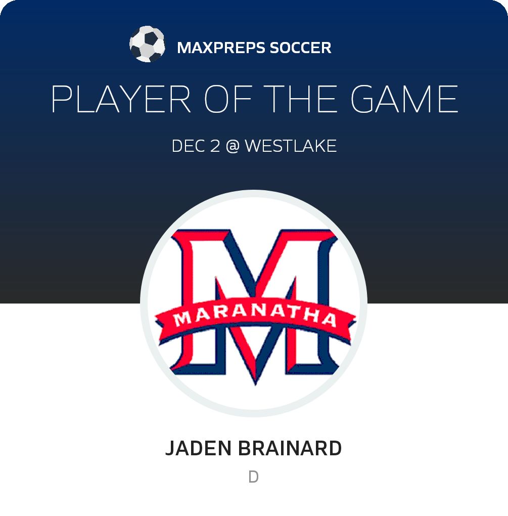 Congratulations to #17 Jaden Brainard for being selected the Maranatha Soccer Player of the Match.