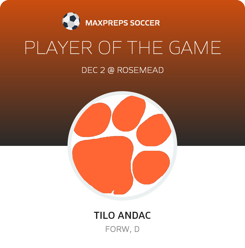 Congratulations to #8 Tilo Andac for being selected the South Pasadena Soccer Player of the Match.
