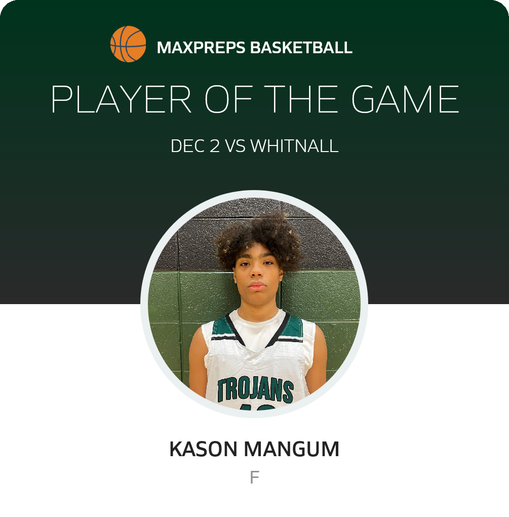 Congratulations to #42 Kason Mangum for being selected the Wauwatosa West Freshman Basketball Player of the Game.
