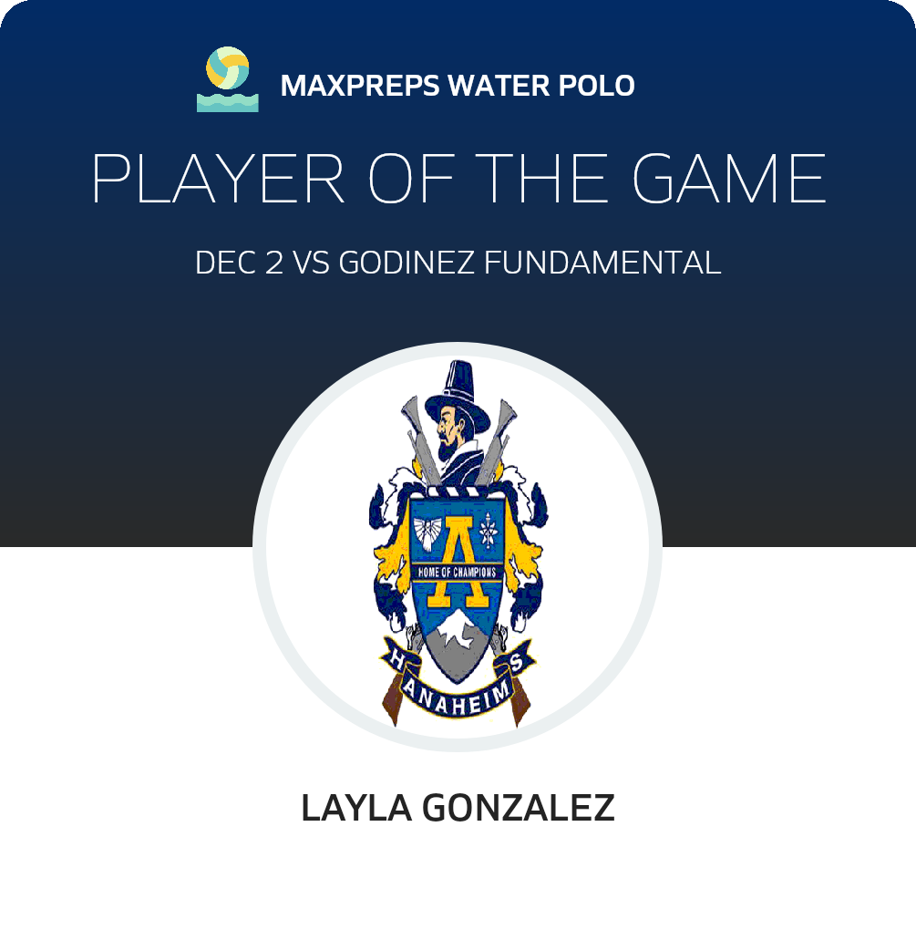 Congratulations to #21 Layla Gonzalez for being selected the Anaheim Girls Water Polo Player of the Game.