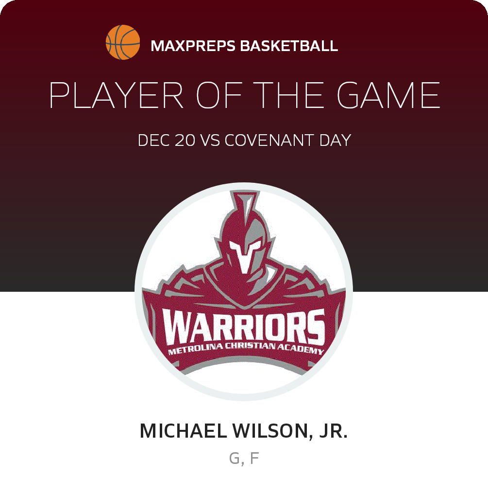 December 20, 2022: Indian Trail, NC 28079 In Tuesday's non-league outing, the Metrolina Christian Academy Warriors (Indian Trail, NC) basketball squad nipped the visiting Covenant Day Lions (Matthews, NC), by a margin of 55-51.