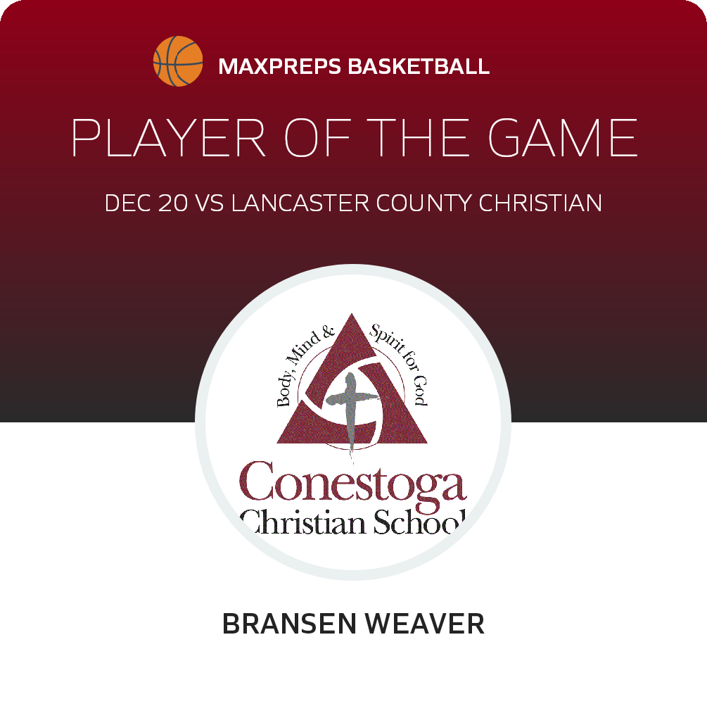Congratulations to #2 Bransen Weaver for being selected the Conestoga Christian JV Basketball Player of the Game.