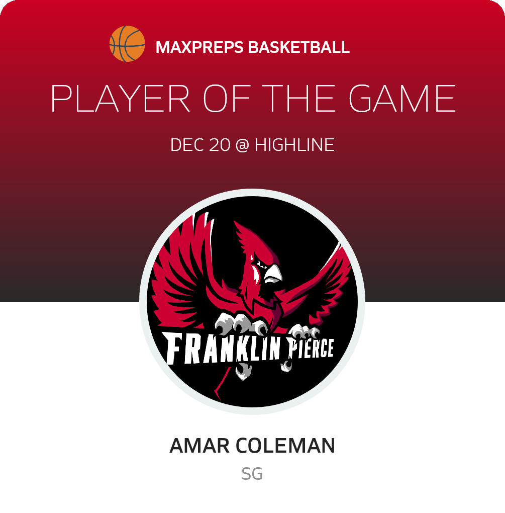 December 20, 2023: Burien, WA 98148 In Wednesday's non-league outing, the Franklin Pierce Cardinals (Tacoma, WA) basketball squad overwhelmed the host Highline Pirates (Burien, WA), by a margin of 70-49.