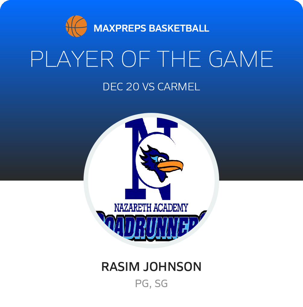 December 20, 2024: LaGrange Park, IL 60526 In Friday's league test, the Nazareth Academy Roadrunners (LaGrange Park, IL) basketball squad got by the visiting Carmel Corsairs (Mundelein, IL), by a final score of 59-52.