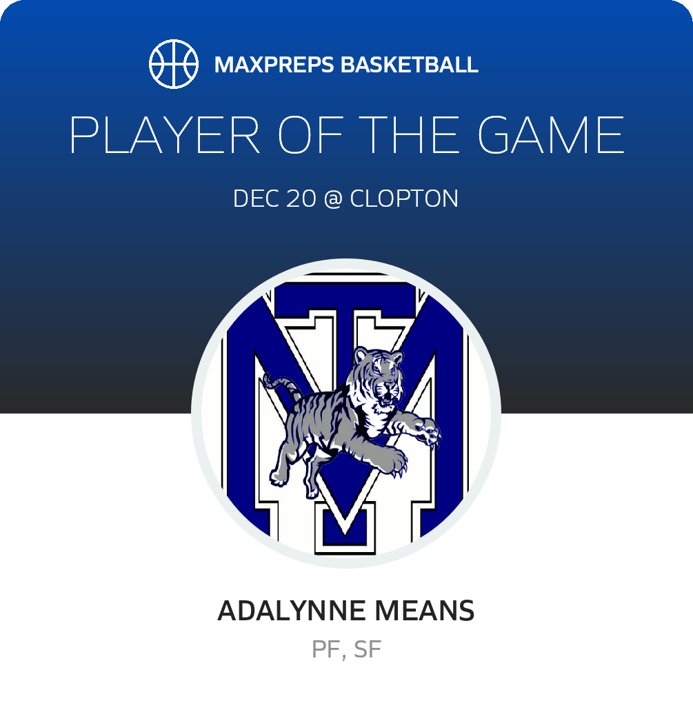Congratulations to #30 Adalynne Means for being selected the Mark Twain Girls Basketball Player of the Game.