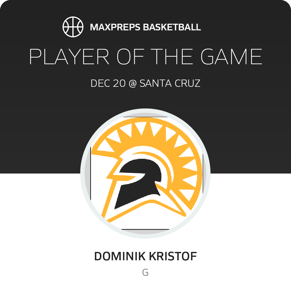 Congratulations to #1 Dominik Kristof for being selected the Mountain View JV Basketball Player of the Game.