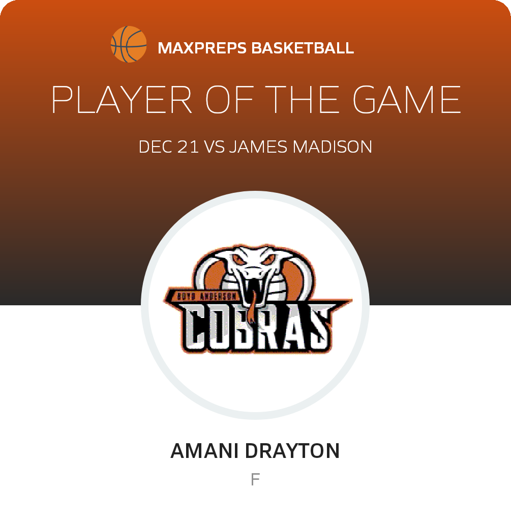 December 21, 2022: Lauderdale Lakes, FL 33309 The Boyd Anderson Cobras (Lauderdale Lakes, FL) basketball knocked off the visiting James Madison Warhawks (Vienna, VA), 46-28 in Wednesday's non-league test.
