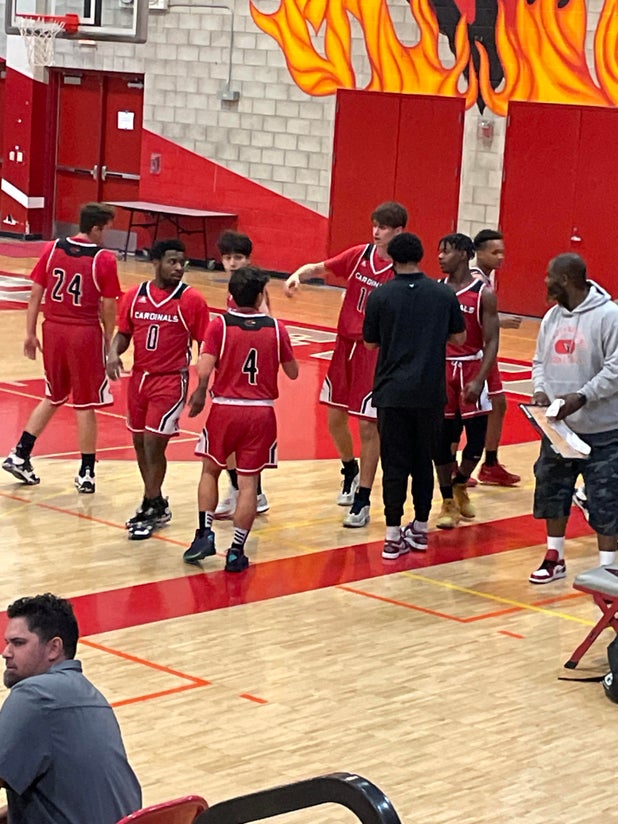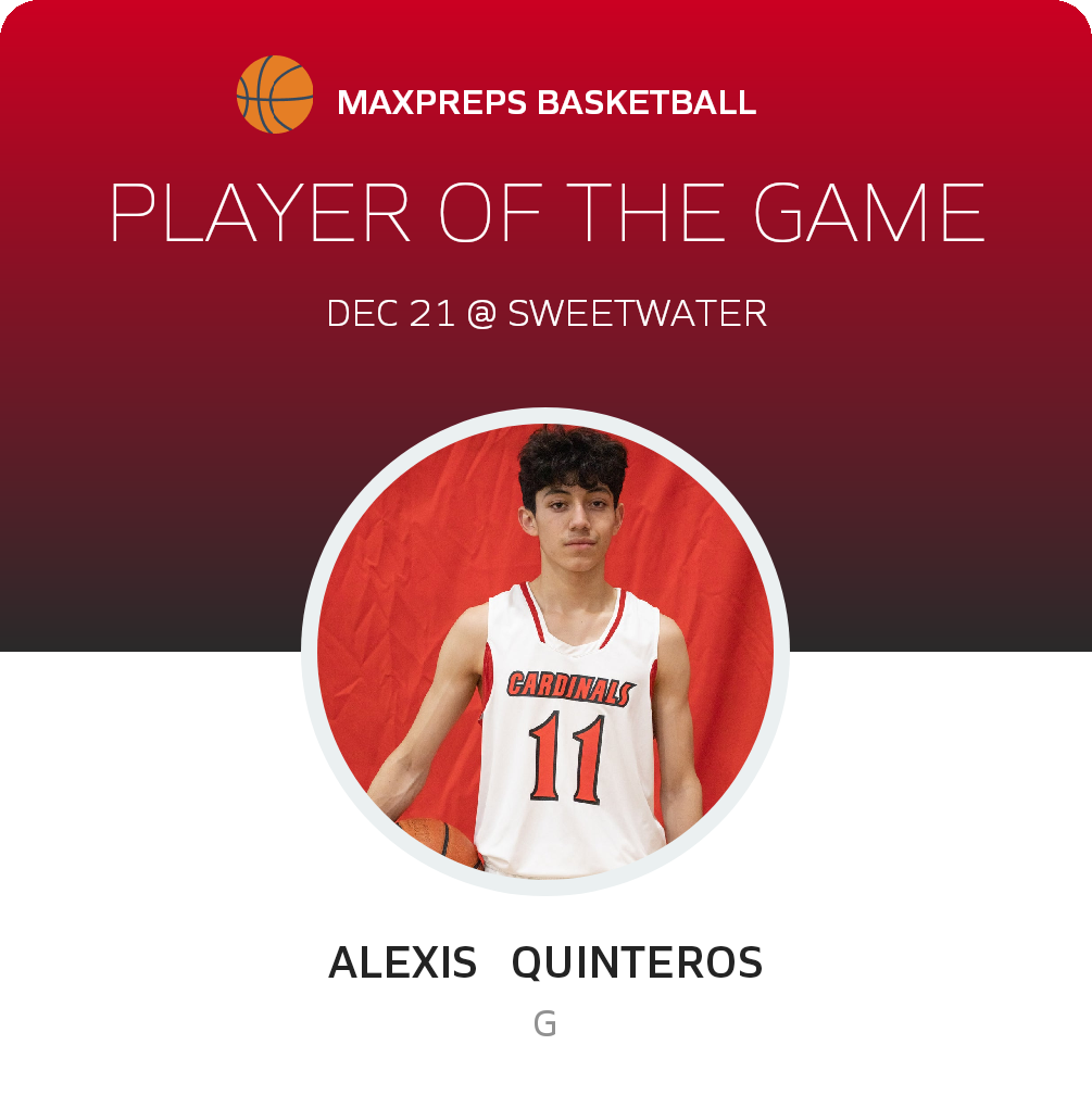 December 21, 2022: National City, CA 91950 San Bernardino Cardinals (San Bernardino, CA) backers were pleased Wednesday as they saw their basketball squad knock off the host Sweetwater Red Devils (National City, CA), 60-41 in a non-league bout.