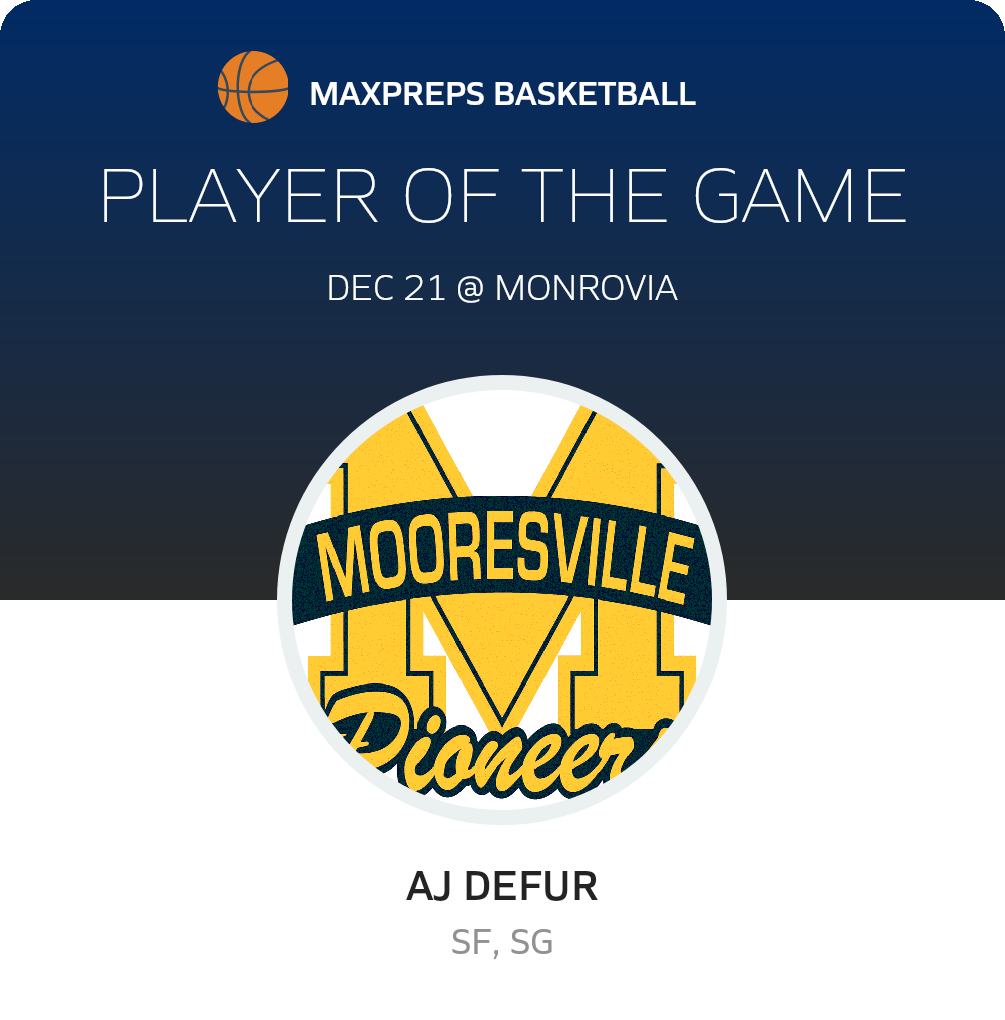 December 21, 2023: Monrovia, IN 46157 In Thursday's non-league outing, the Mooresville Pioneers (Mooresville, IN) basketball squad beat the host Monrovia Bulldogs (Monrovia, IN), by a count of 73-64.