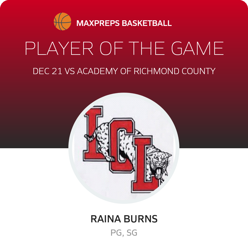 Congratulations to NaCja Johnson for being selected the Academy of Richmond County Girls Basketball Player of the Game.