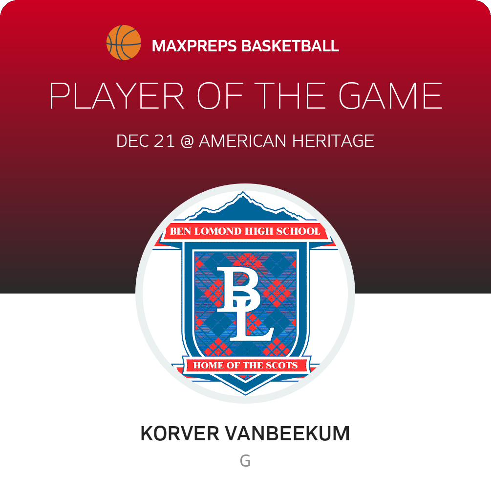 December 21, 2024: American Fork, UT 84003 In Saturday's non-league contest, the host American Heritage Patriots basketball team scored a big 105-61 triumph over the Ben Lomond Scots.