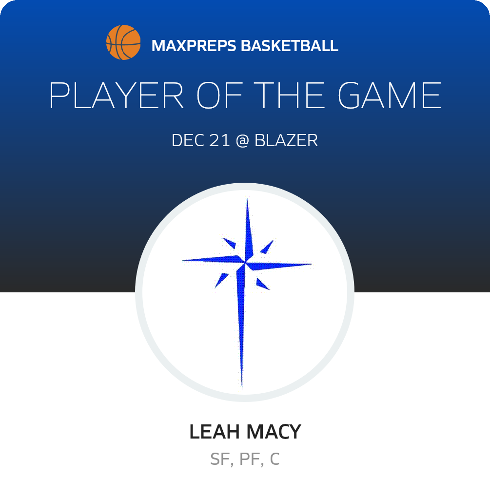 Congratulations to #44 Leah Macy for being selected the Bethlehem Girls Basketball Player of the Game.