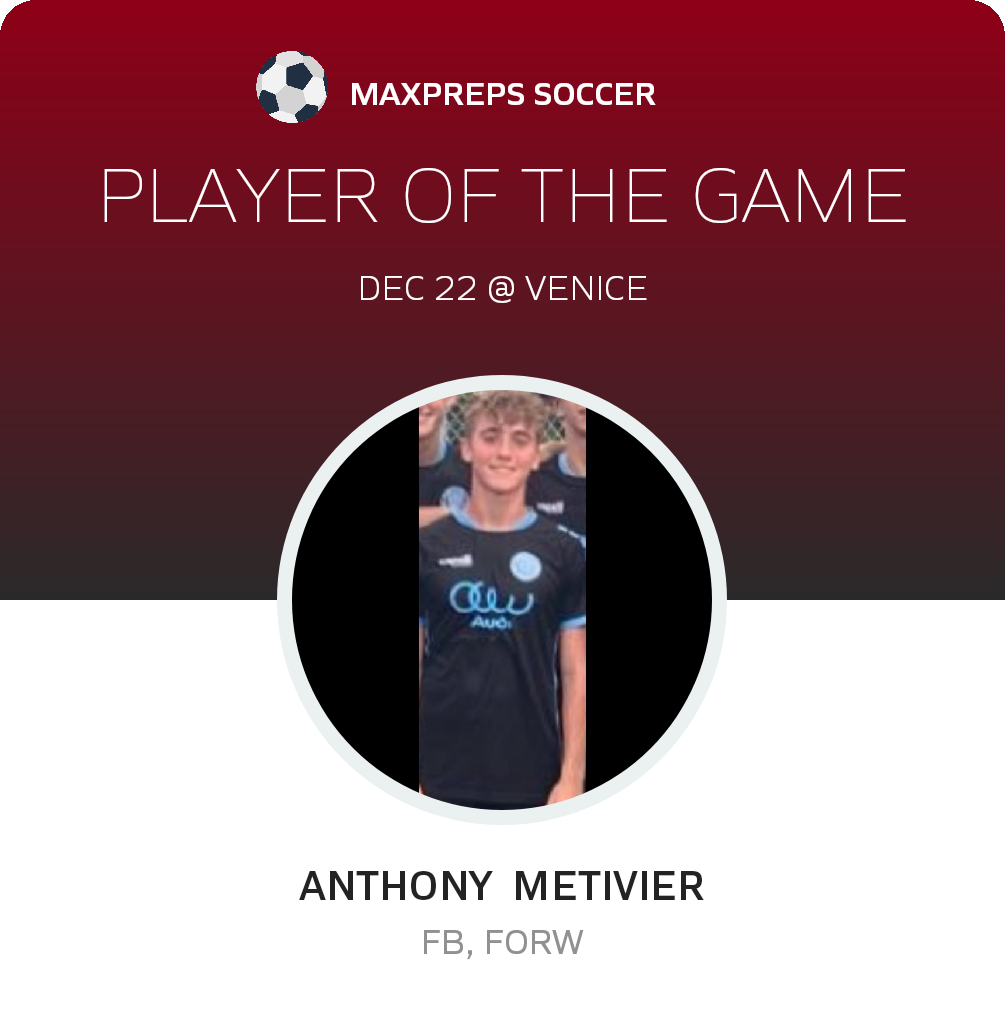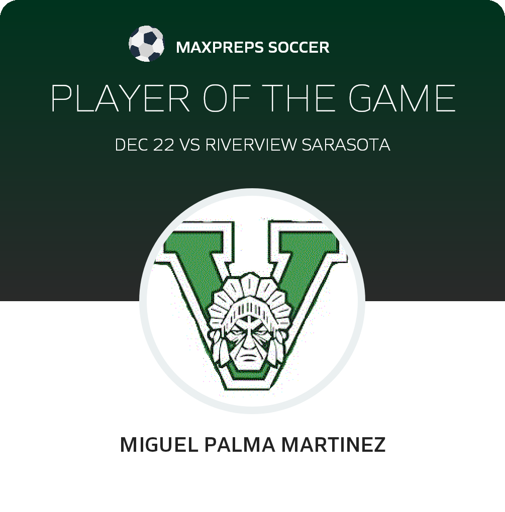 Congratulations to #11 Miguel Palma Martinez for being selected the Venice Soccer Player of the Match.