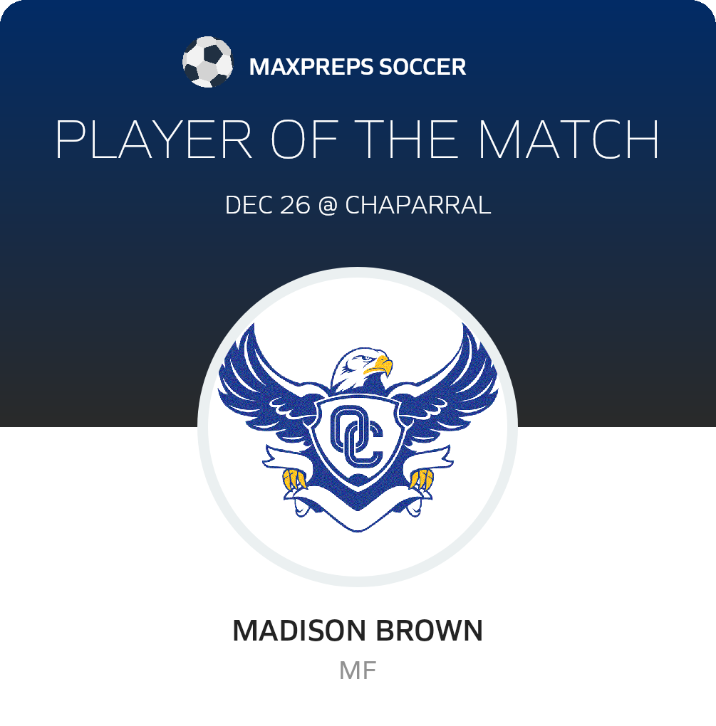 Congratulations to #5 Kiana Knudson for being selected the Chaparral Girls Soccer Player of the Match.