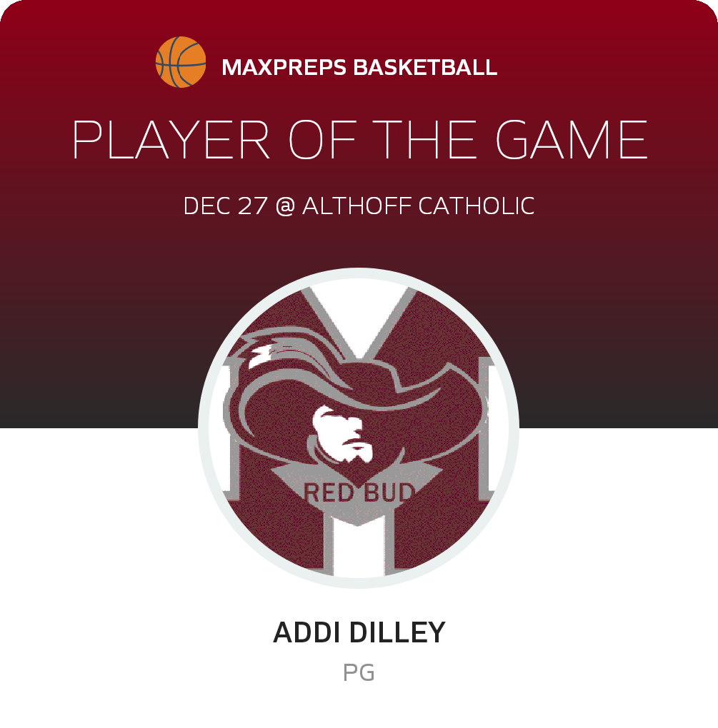 December 27, 2022: Belleville, IL 62226 In Tuesday's non-league outing, the Althoff Catholic Crusaders (Belleville, IL) basketball squad overwhelmed the visiting Red Bud Musketeers (Red Bud, IL), by a margin of 69-36.