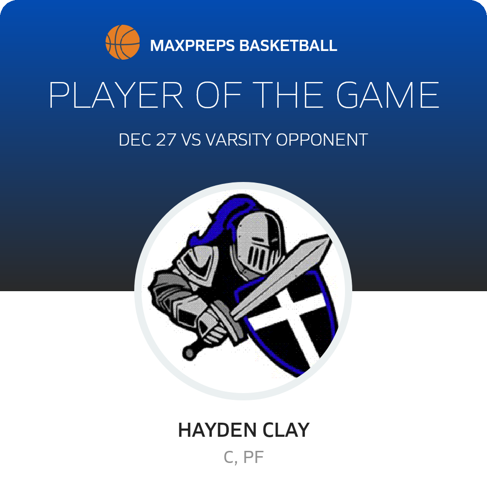 Congratulations to #15 Hayden Clay for being selected the Trinity Christian Basketball Player of the Game.