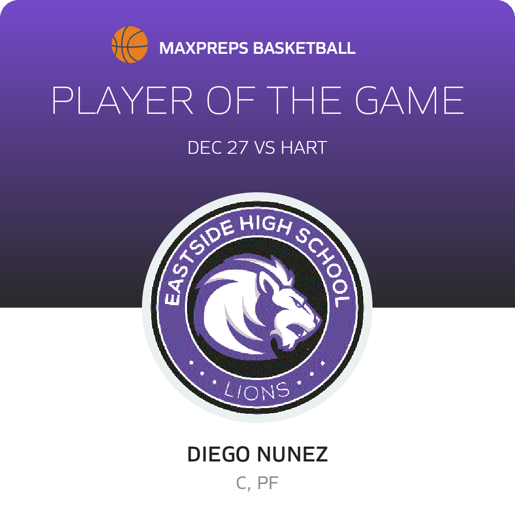 With the loss, Eastside falls to 4-4 on the campaign. The Lions travel to West Ranch (Valencia, CA) to confront the Wildcats in a non-league game on Saturday, December 28. The Wildcats go into the game with a record of 8-3. West Ranch lost 61-59 in their recent league game against Valencia (Valencia, CA)
