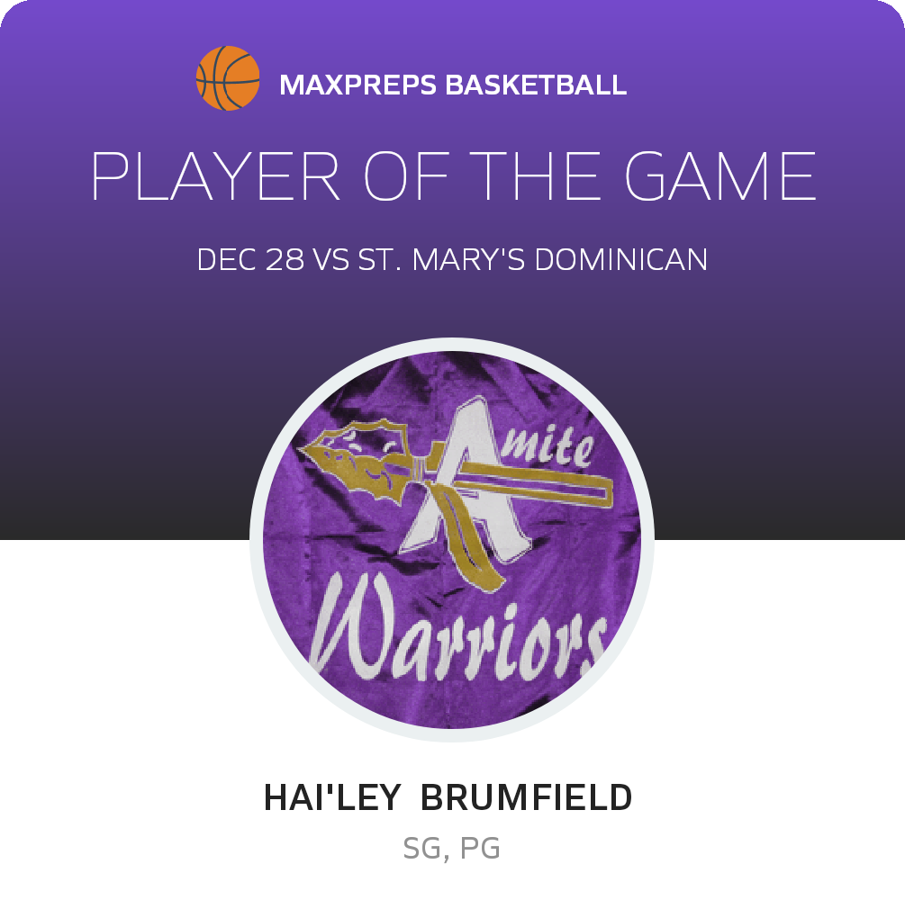 December 28, 2022: Amite, LA 70422 The St. Mary's Dominican basketball team (New Orleans, LA), was toppled 70-60 in Wednesday's non-league battle with the host Amite Warriors (Amite, LA)