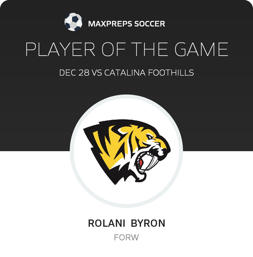 Congratulations to #14 Rolani Byron for being selected the Saguaro Girls Soccer Player of the Match.