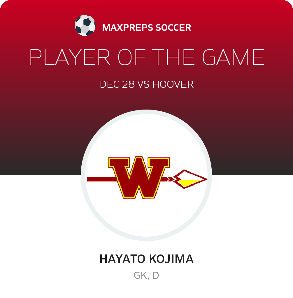 Congratulations to #0 Hayato Kojima for being selected the Woodbridge Soccer Player of the Match.