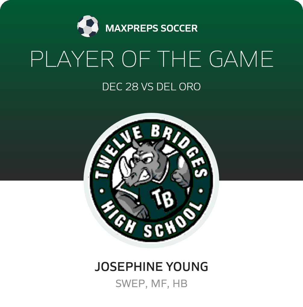 Congratulations to #21 Josephine Young for being selected the Twelve Bridges Girls Soccer Player of the Match.