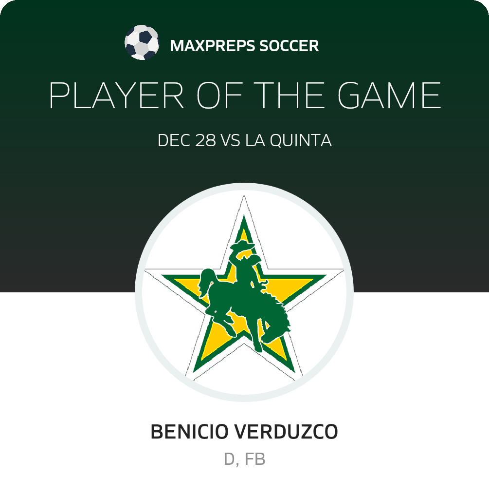 Congratulations to #5 Benicio Verduzco for being selected the Cajon Soccer Player of the Match.