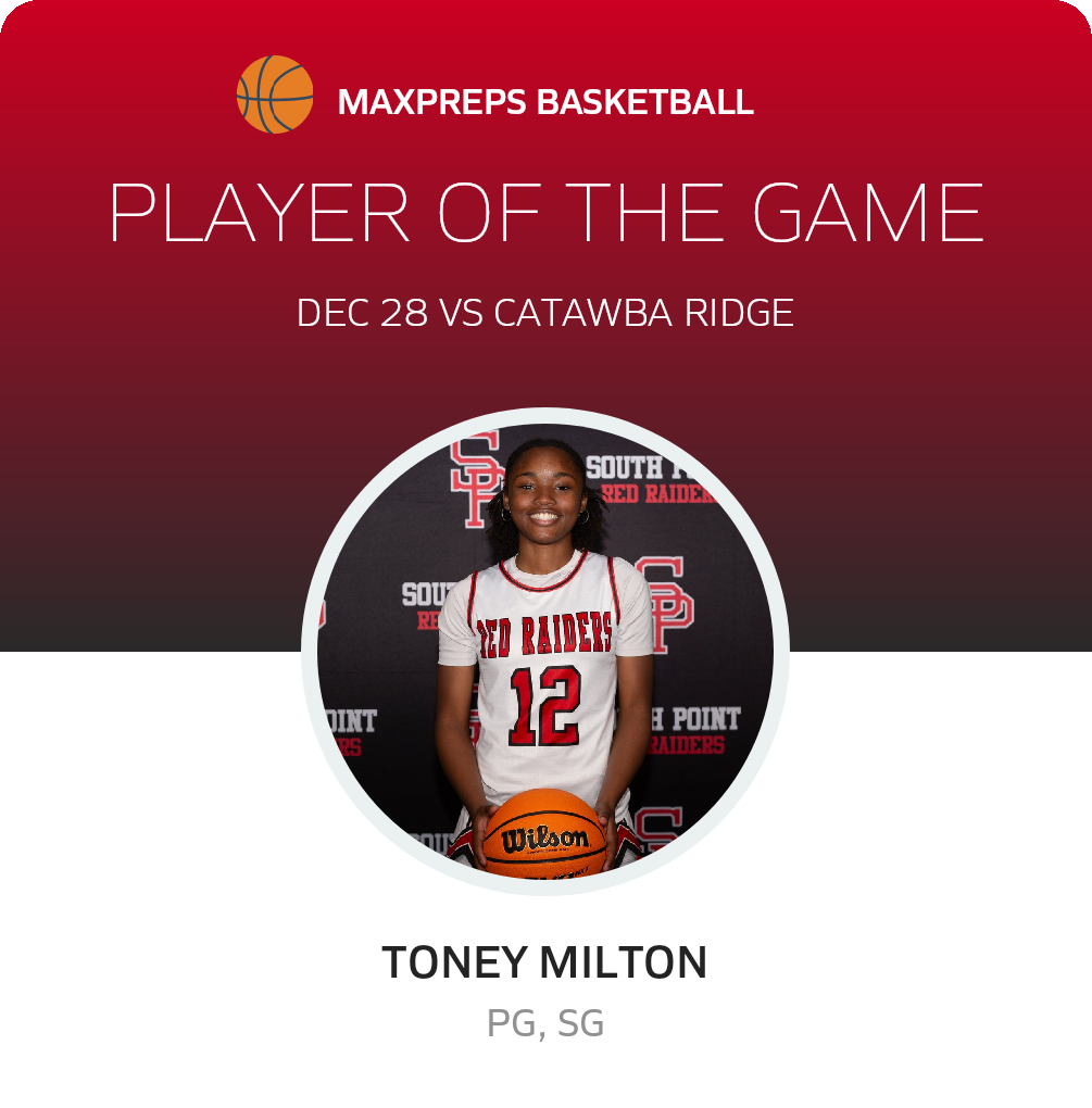December 28, 2024: Belmont, NC 28012 The South Point Red Raiders bounced the visiting Catawba Ridge Copperheads basketball squad by a final score of 51-26 in Saturday's non-league outing.