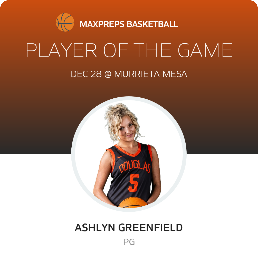 Congratulations to #5 Ashlyn Greenfield for being selected the Douglas Girls Basketball Player of the Game.