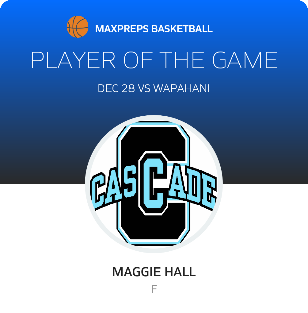 Congratulations to #20 Maggie Hall for being selected the Cascade Girls JV Basketball Player of the Game.