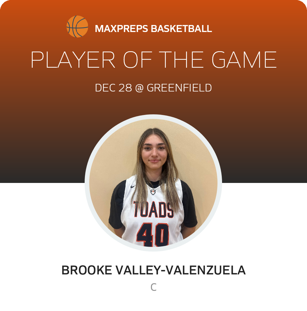 Congratulations to #40 Brooke Valley-Valenzuela for being selected the Coalinga Girls JV Basketball Player of the Game.