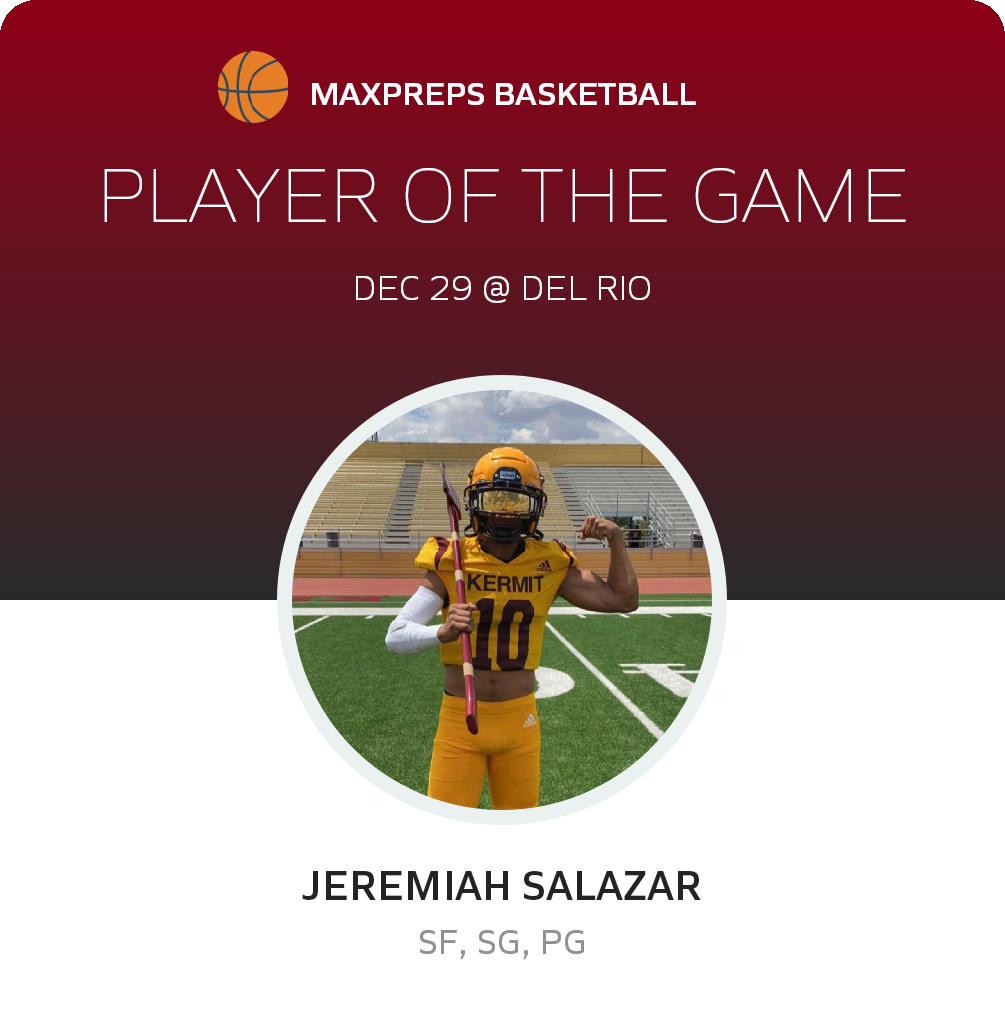 Congratulations to #10 Jeremiah Salazar for being selected the Kermit Basketball Player of the Game.