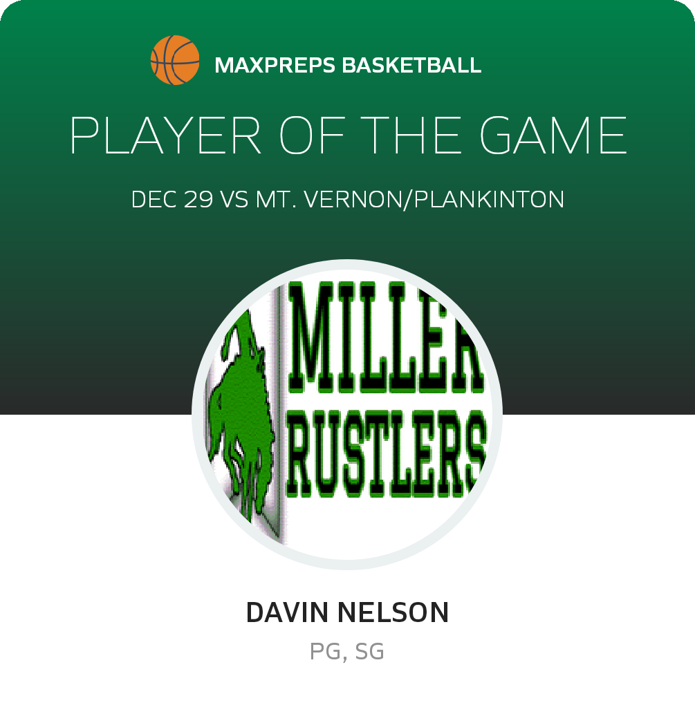 December 29, 2022: Miller, SD 57362 The Mt. Vernon/Plankinton Titans basketball team scored 70 points and restricted the host Miller Rustlers to 43 in the Titans non-league victory on Thursday.