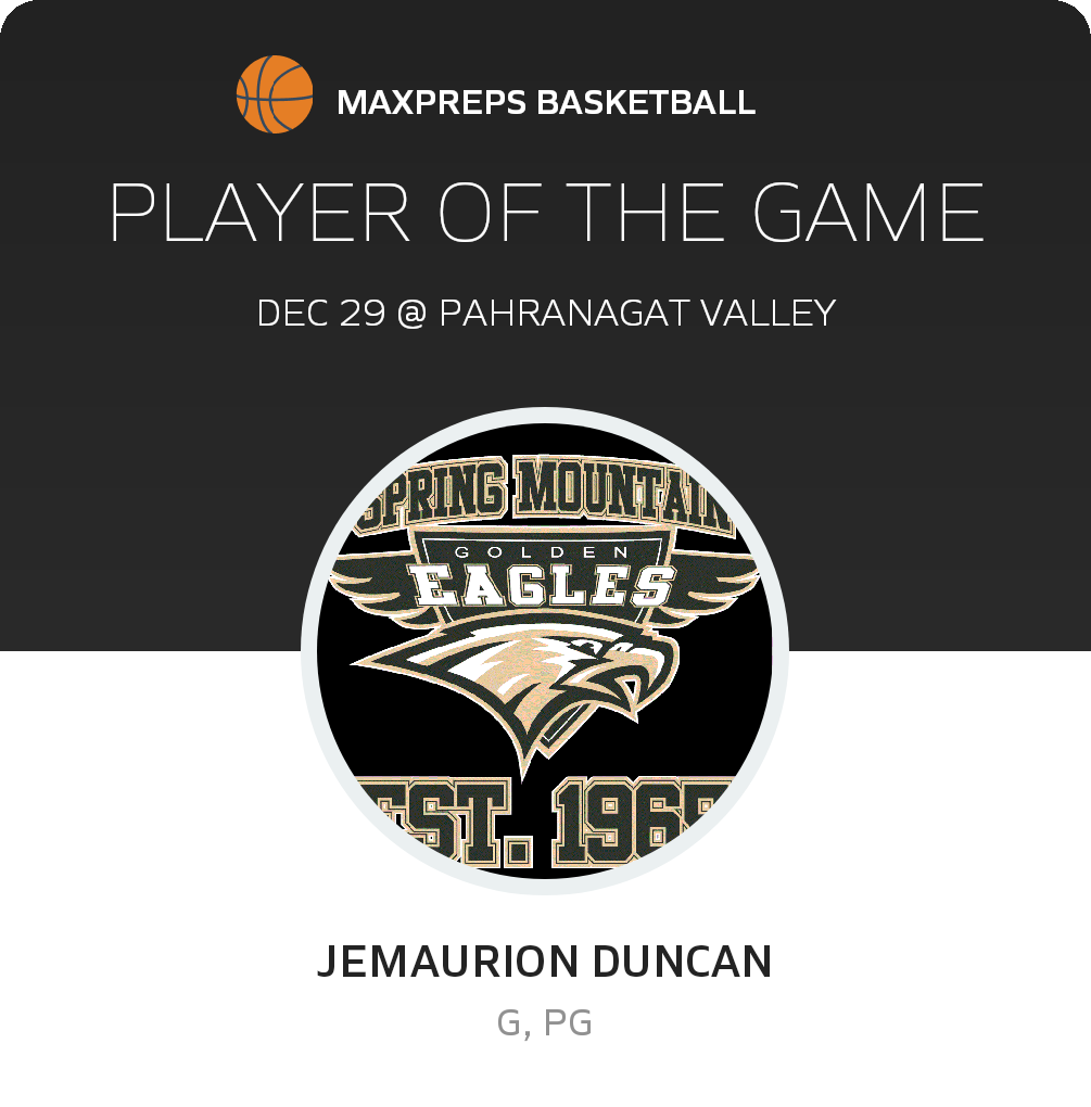 With the win, Spring Mountain upgrades its record to 2-7 on the season. The Eagles host Sandy Valley (Sandy Valley, NV) to play the Sidewinders in a non-league bout on Wednesday, January 4. The Sidewinders go into the bout with a record of 3-2. Sandy Valley lost 35-32 in their recent non-league bout against Baker (Baker, CA)