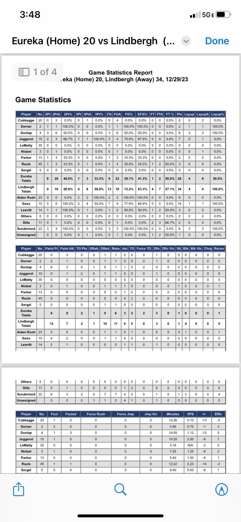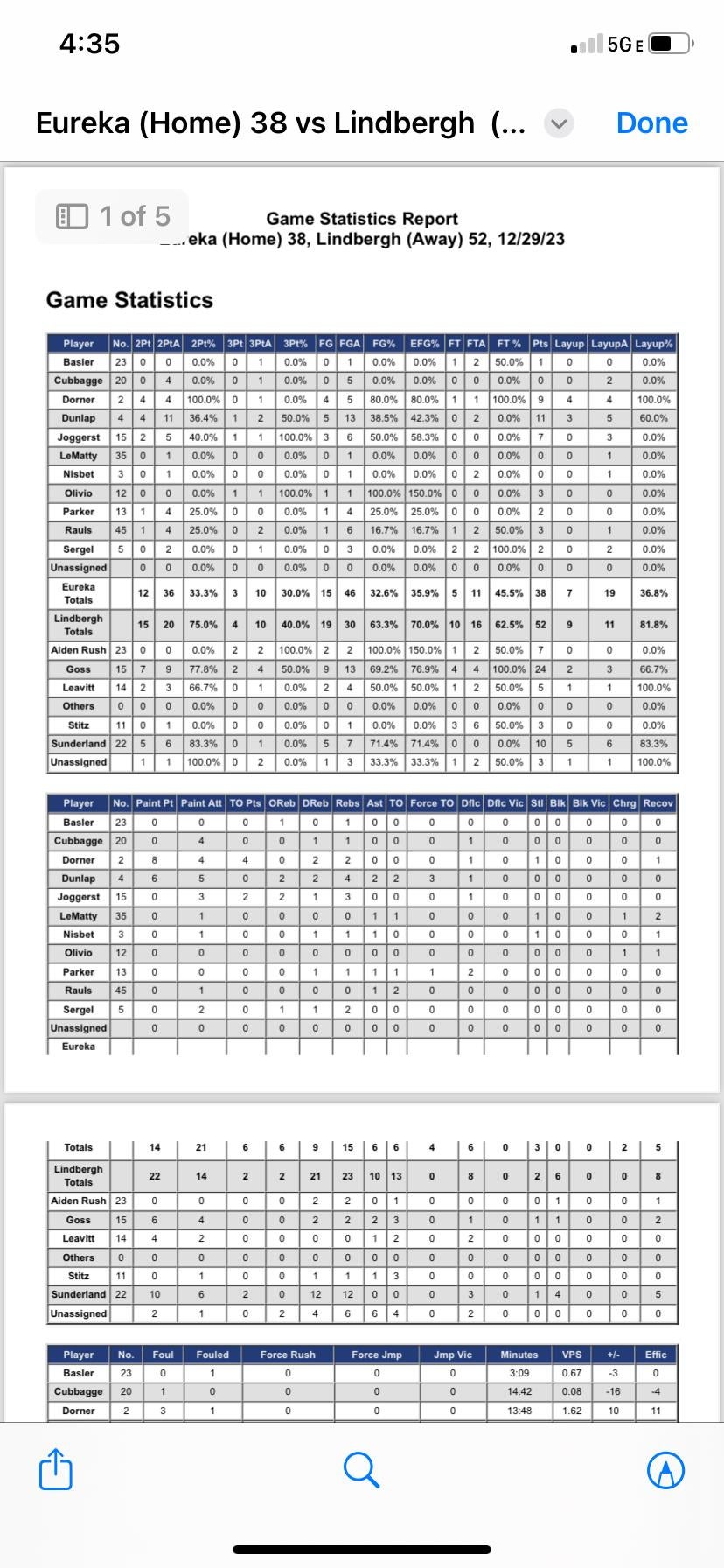 December 29, 2023: St. Louis, MO 63126 Lindbergh Flyers (St. Louis, MO) backers were in high spirits Friday as they witnessed their basketball squad thwart the visiting Eureka Wildcats (Eureka, MO), 52-38 in a non-league bout.