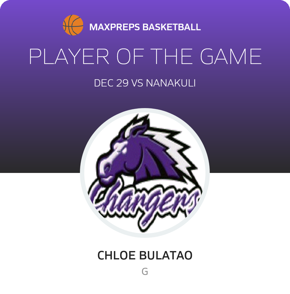 Congratulations to #1 Chloe Bulatao for being selected the Pearl City Girls Basketball Player of the Game.